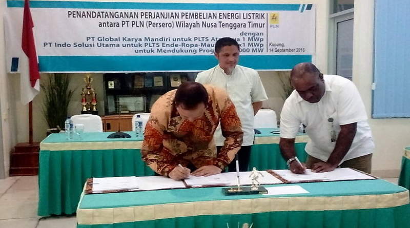 Penandatanganan perjanjian dilakukan oleh General Manager PT PLN (Persero) Wilayah Nusa Tenggara Timur (NTT), Richard Safkaur dan Direktur Utama PT Global Karya Mandiri, Lissa Imelia yang pada hari ini diwakili oleh Komisarisnya yaitu, Raden Kartono dan Direktur Utama PT Indo Solusi Utama, Rici Candra Perwira yang disaksikan langsung oleh Direktur Bisnis Regional Sulawesi dan Nusa Tenggara PT PLN (Persero), Machnizon, Rabu (14/09/2016) di Kantor PT PLN (Persero) Wilayah NTT.