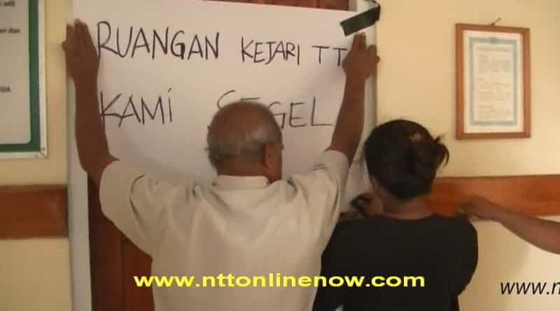 Kepada massa yang melakukan aksi penyegelan, Kasi Intel Novantoro Catur Prabowo menjelaskan pihak kejaksaan sudah mempunyai itikad baik mengeluarkan surat eksekusi bagi para tersangka, namun kewenangan sudah beralih ke Pengadilan Tipikor Kupang.