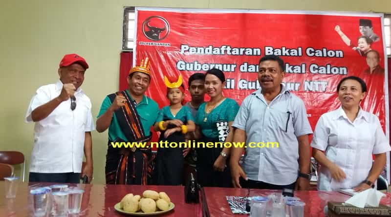 Didampingi istri dan anak, bersama tim sukses beserta sejumlah pengurus DPW PKB NTT, Novianto yang mengenakan pakaian adat daerah Sumba, mendaftar ke PDI Perjuangan NTT, Senin (15/5/2017) sore.