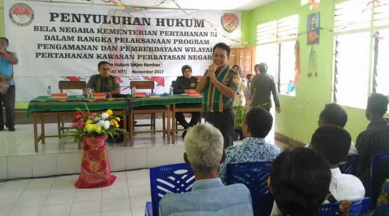 Kegiatan penyuluhan meningkatkan wawasan kebangsaan dan nasionalisme yang yang diikuti ratusan warga berlangsung di Aula SDK Wilaian Dusun Likubauk, Desa Tohe Leten wilayah Timor Barat perbatasan RI-Timor Leste dibawakan langsung oleh pemateri Kabag Luhkum Biro Hukum Kemhan Kolonel Chk Widarsono.
