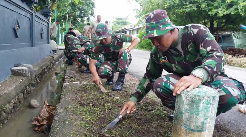 Pantauan di lapangan kegiatan pembersihan yang dilaksanakan di tiga lokasi tersebut antara lain sasaran pembersihan saluran air atau got, membabat rumput serta memindahkan tumpukan sampah. Penrem 161 Wira Sakti/Ida Bagus