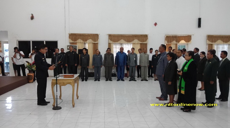 Atambua, NTTOnlinenow.com – Sebanyak 12 pejabat Eselon II pada lingkup Pemerintah Kabupaten Belu dilantik Bupati Belu, Willybrodus Lay di aula gedung Betelalenok, Rabu (24/1/2018).