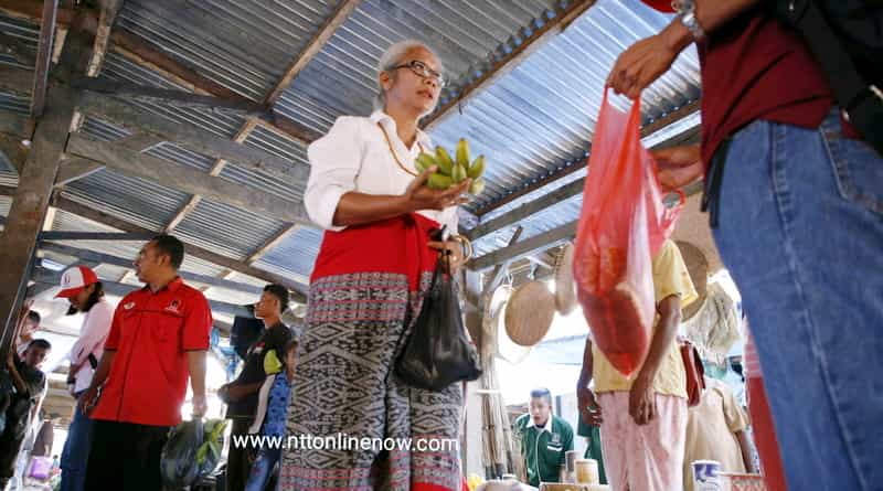 Di tengah kesibukannya, Mama Emi menyempatkan diri mengunjungi pedagang di pasar inpres Soe. Perempuan berambut putih itu lantas menyalami pedagang pasar sambil mendengarkan aspirasi para pedagang.
