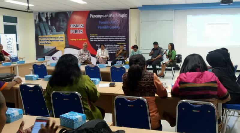 Dialog publik dengan thema besar sebagai thema payung kepemimpinan perempuan dari level pusat sampai desa untuk eksekutif dengan tagline perempuan memimpin, pemilih aktif dan pemilih cerdas yang dipandu aktivis perempuan dari media Anna Djukana,SH,MH tersebut menghadirkan nara sumber Thres Sitti, KPU Provinsi NTT, Junior Adi Chandra Nange, Panwaslu Kota Kupang, Dion Bata Putra, Pemred Pos Kupang, Akdemisi, Prof.Dr. Mien Ratu Udju, Aktivis Perempuan, Ferderika Tadu Hungu,MA.
