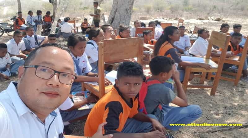 Kupang, NTTOnlinneow.com – Dari sebanyak 73 orang siswa Sekolah Menengah Atas Negeri (SMAN) 3 Amarasi Timur, Kabupaten Kupang, Provinsi Nusa Tenggara Timur (NTT), sebagian siswa terpaksa harus belajar di bawah pohon Asam, akibat bangunan sekolah mereka hancur diterpa bencana angin puting beliung pada Minggu, (9/9/2018).
