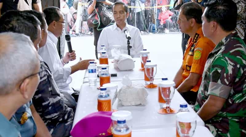 Tiba di lokasi pada pukul 16.00 WIB, Kepala Negara langsung mengadakan rapat koordinasi bersama Menteri Perhubungan Budi Karya Sumadi, Panglima TNI Marsekal Hadi Tjahjanto, Kepala Badan Nasional Pencarian dan Pertolongan (BNPP, sebelumnya bernama Basarnas) Marsekal Madya TNI Muhammad Syaugi, Ketua KNKT Soerjanto Tjahjono, dan sejumlah unsur terkait lainnya. Rapat dilangsungkan di sebuah tenda yang berada di posko terpadu.