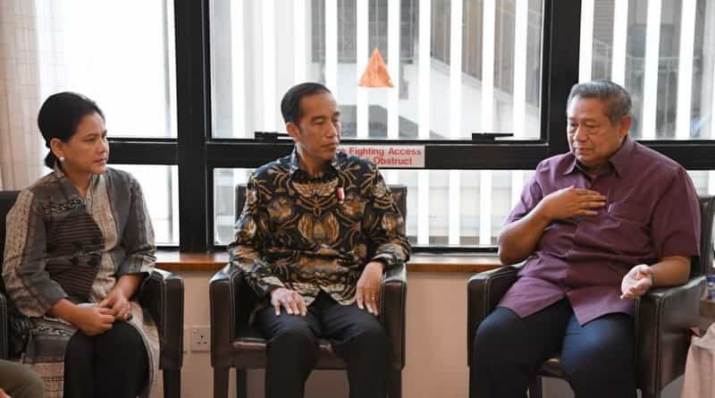 Setelah itu, Presiden dan Ibu Iriana berbincang-bincang dengan SBY di sebelah ruang perawatan. Turut hadir dalam pertemuan itu, Kepala Staf Kepresidenan Moeldoko, Hatta Rajasa, putra bungsu Presiden Kaesang Pangarep, Agus Harimurti, dan Annisa Pohan.