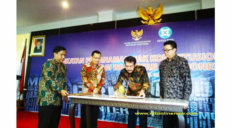 “Tapi terlebih dari itu, pers harus fokus pada masalah dan penanganan yang dilakukan dan yang akan dilakukan oleh Bawaslu, Dewan Kehormatan Penyelenggaraan Pemilu, kepolisian, kejaksaan, pengadilan, Komisi Yudisial, dan tentu saja Mahkamah Konstitusi,” tandas Yosep.Diakhir acara pembukaan secara resmi pelatihan bagi wartawan itu, dilakukan penandatanganan nota kesepahaman antara MK-RI dan Dewan Pers Indonesia oleh Ketua MK Anwar Usman dan Ketua Dewan Pers Yosep Stanley Adi Prasetyo.