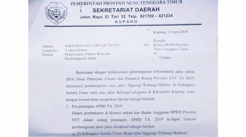 Pemerintah Provinsi (Pemprov) NTT akhirnya memberikan jawaban atas polemik pergeseran anggaran proyek ruas jalan poros tengah Sumba Timur ke ruas jalan Bokong-Lelogama.