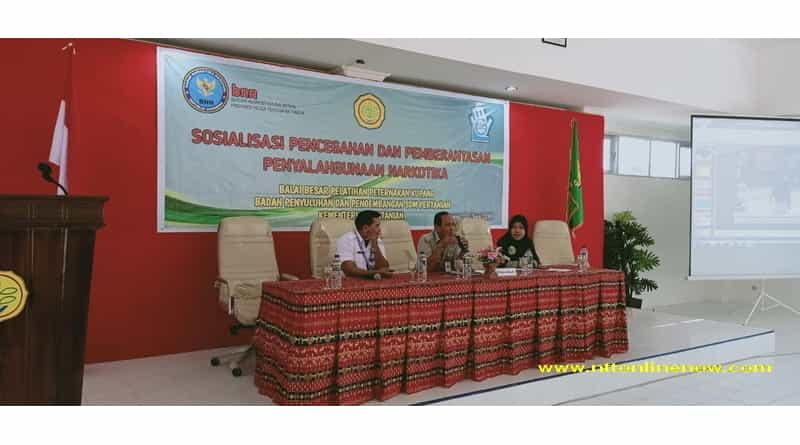 Kupang, NTTOnlinenow.com – Badan Narkotika Nasional Provinsi (BNNP) Nusa Tenggara Timur (NTT) melakukan sosialisasi tentang bahaya narkotika dan obat/bahan berbahaya (Narkoba), sekaligus memeriksa urin Aparatur Sipil Negara (ASN) lingkup Balai Besar Pelatihan Peternakan (BBPP) Kupang, Kamis (20/6/2019).