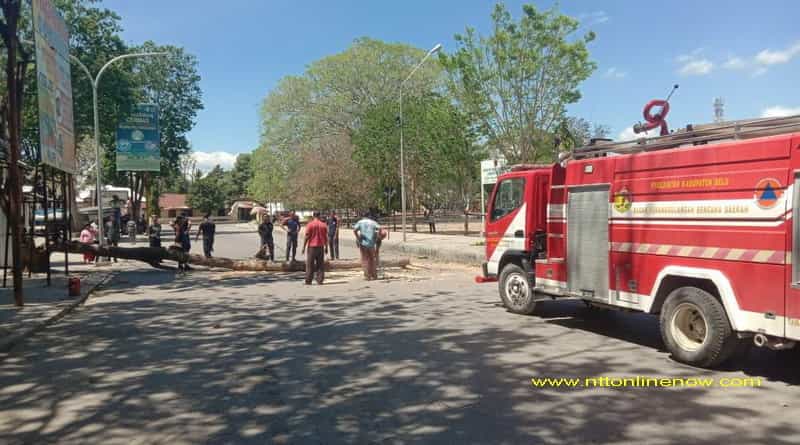 Pohon tumbang sekitar pukul 10.25 Wita dan menutup jalan raya diantara pasar senggol dan lapangan umum Atambua. Selain menutup jalan, pohon tumbang menimpa kabel listrik lampu penerangan dan kabel telkom hingga putus.
