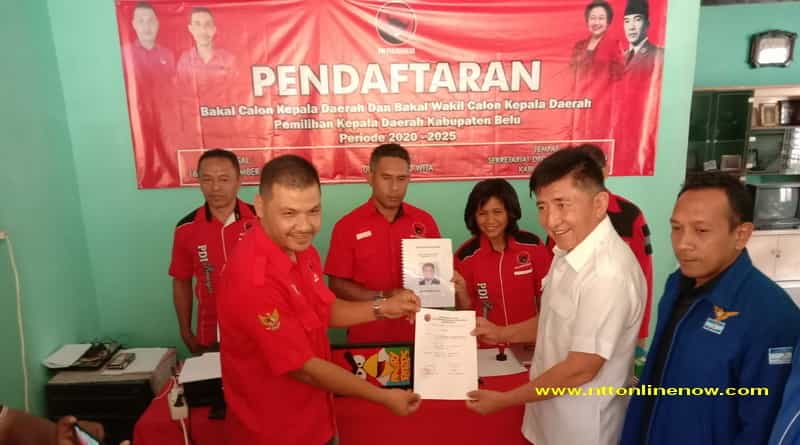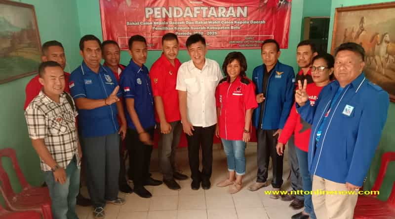 Disaksikan media, Willy Lay selaku Ketua DPC Partai Demokrat Belu didampingi seluruh pengurus menyerahkan berkas pendaftaran ke Ketua DPC PDI-P Belu Octovianus Nyongki Rorong didampingi Sekretaris DPC PDI-P Frid Da Costa, Ketua Panitia Goreti Bulor, Sekretaris Panitia Marcel Bria Muti juga para Kader Partai lainnya.
