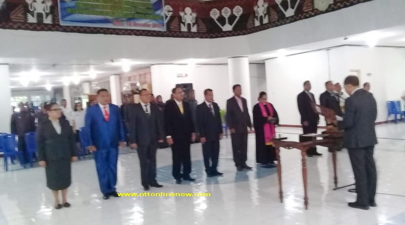 Kupang, NTTOnlinenow.com – Wali Kota Kupang, Jefri RiwuKore kembali melakukan pelantikan atau pengambilan sumpah jabatan tujuh pejabat eselon II di lingkup pemerintah Kota Kupang pada hari ini, Rabu 18 Desember 2019. Pelantikan ini merupakan penyesuaian atas perubahan nomenklatur yang berubah, agar dapat disesuaikan kembali bidang-bidang koordinasi di lingkup setda Kota Kupang.