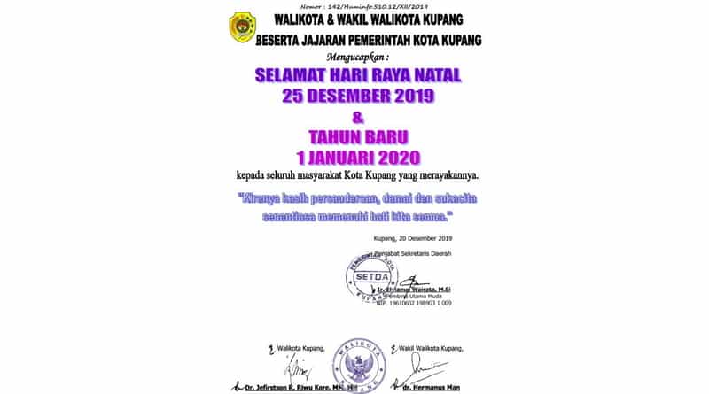 Headline 23/12/2019 alex Bagikan Artikel iniPemkot Kupang Mengucapkan Selamat Hari Natal 25/12/2019 & Tahun Baru 01/01/2020