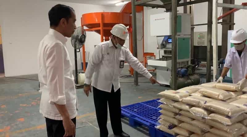 Presiden Jokowi kemudian berkeliling gudang beras tersebut dan meninjau kualitas dari stok beras yang siap didistribusikan oleh Bulog.