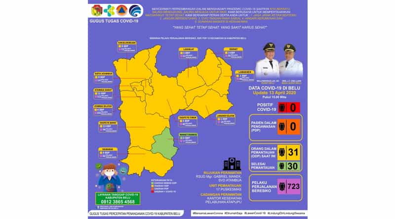 Demikian data rilis yang diterima media dari Gugus Tugas Percepatan Penanganan Covid-19 Kabupaten Belu melalui Juru Bicara Cristoforus M. Loe Mau, Senin (13/4/2020).