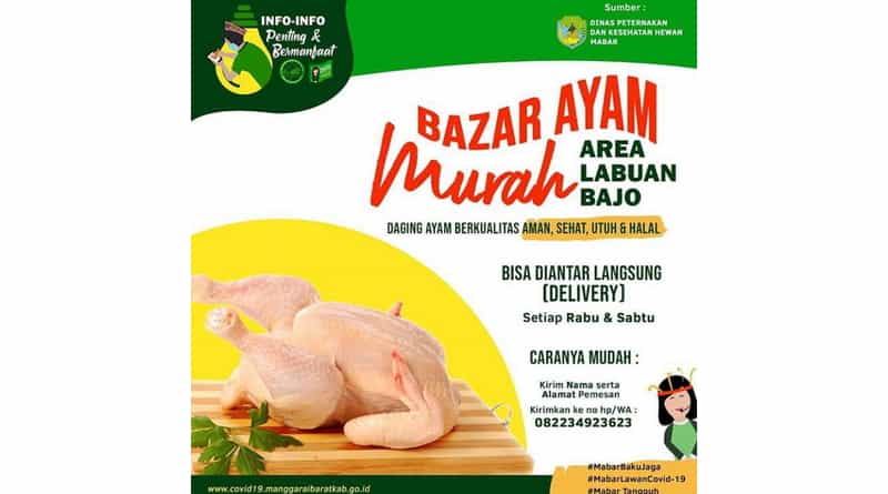 Kepala Dinas Peternakan dan Kesehatan Hewan Kabupaten Manggarai Barat, drh. Theresia P.Asmon, kepada wartawan, Kamis, 22 April 2020 mengatakan, bazar murah online ini sudah dimulai sejak, 31 Maret lalu saat situasi Covid-19 mulai terasa. Bermula dari keluhan peternak Unggas yang mengaku mengalami kerugian karena permintaan ayam pedaging dipasaran semakin menurun, akhibat hotel dan restoran di tutup.