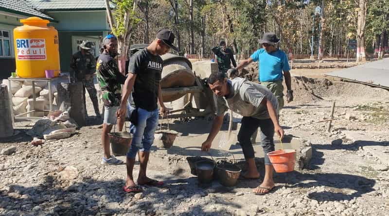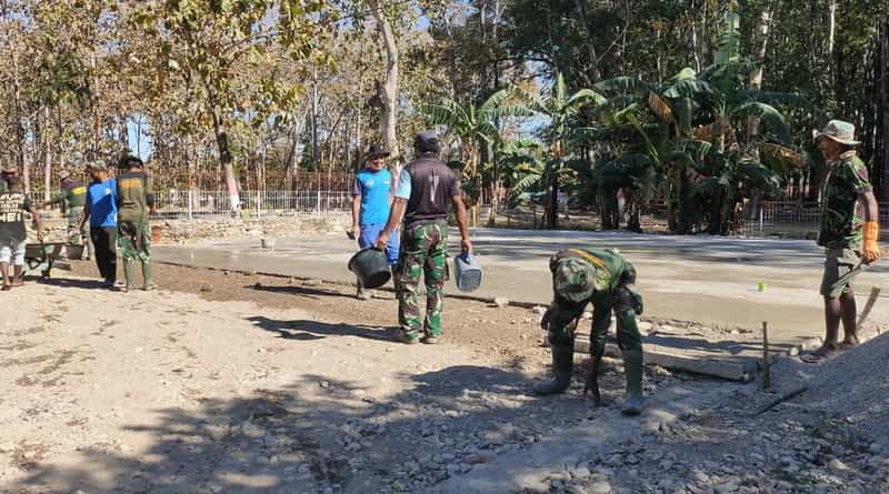Bangkitkan Budaya Olah Raga, Koramil 1605-01/Atambua Bangun Lapangan Serbaguna Bagi Warga
