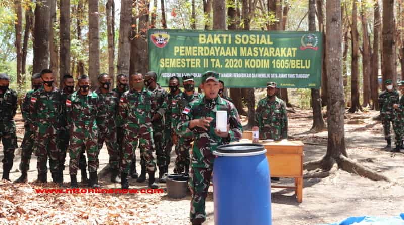 Dandim 1605/Belu, Letkol Inf. Wiji Untoro mengatakan, praktek pembuatan fermentasi pakan ternak dari daun dan rumput kering. Ada 2 poin penting kenapa harus melaksanakan pembuatan pakan ternak.