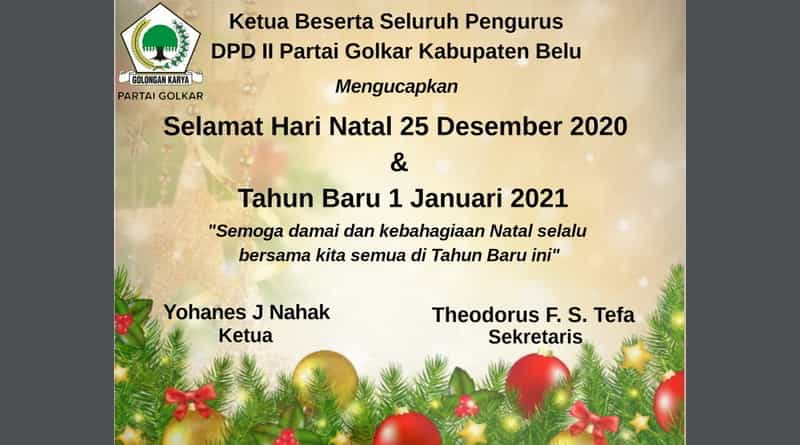 Headline 21/12/2020 alex Bagikan Artikel iniKetua Beserta Pengurus DPD II Golkar Kabupaten Belu Mengucapkan Selamat Natal 25 Desember 2020 Tahun Baru 1 Januari 2021