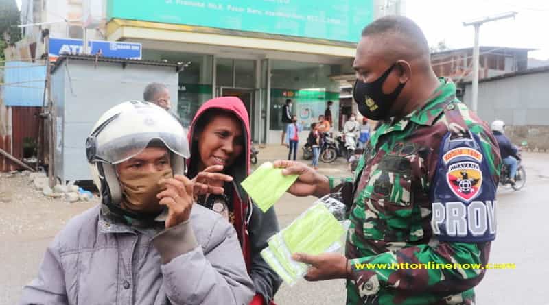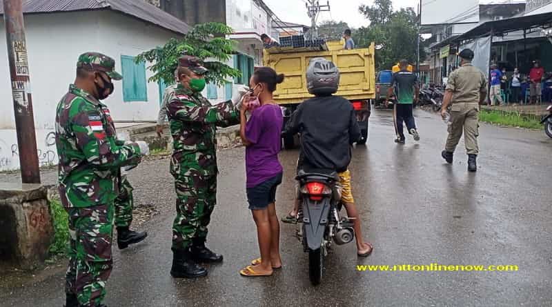 Personil Gabungan Kodim Belu, Sat Pol PP Bagi Masker dan Himbau Warga Patuhi Prokes Covid-19