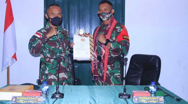 Serah terima pasukan akhiri tugas ditandai dengan pengalihan Komando dan pengendalian (Alih Kodal) memorandum oleh kedua Dansatgas di Mako Satgas Pamtas RI-RDTL Sektor Timur, Kelurahan Umanen, Kecamatan Atambua Barat, Kamis (04/03/2021) sore kemarin.