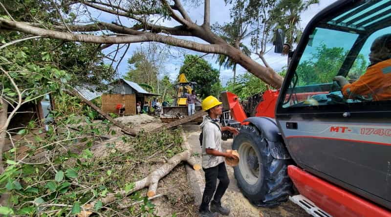 Waingapu, NTTOnlinenow.com, – Paska bencana badai siklon tropis Seroja yang melanda NTT khususnya di Kecamatan Umalulu Kabupaten Sumba Timur PT Muria Sumba Manis (PT MSM) menyalurkan bantuan sembako dan menurunkan alat berat guna mengevakuasi sejumlah pohon yang tumbang disepanjang jalan.