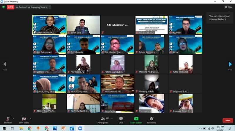 NTTOnlinenow.com – Sekolah Guru Indonesi (SGI) Dompet Dhuafa menyelenggarakan peringatan Hari Pendidikan Nasional dalam bentuk sharing inovasi pembelajaran secara virtual melalui Zoom Meeting dan disiarkan secara langsung melalui fanspage facebooknya pada Minggu, 2 Mei 2021 Pukul 13.30-15.00 WIB dengan tema “Inovasi Guru dalam Menyonsong Pembelajaran Tatap Muka”, yang dihadiri oleh kurang lebih 600 guru dan kepala sekolah dari berbagai wilayah di Indonesia.