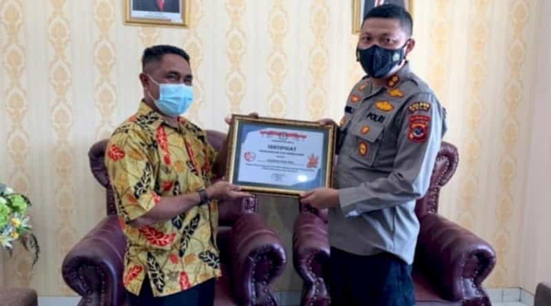 Ketua KPU kabupaten Belu, Mikhael Nahak menyerahkan langsung penghargaan berupa sertifikat kepada Kapolres Belu, AKBP Khairul Saleh di ruang kerjanya, Selasa (18/5/2021).