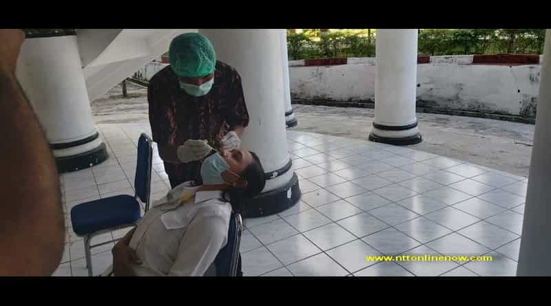 Rapit antigen dari Dinas Kesehatan Belu untuk pegawi dan tamu dilakukan di lantai 1 Kantor Bupati Belu wilayah Timor Barat perbatasan RI-RDTL.