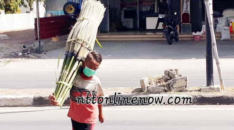 Kefamenanu, NTTOnlinenow.com – Stefanus Sandro Nusin (12), seorang siswa kelas VI salah satu Sekolah Dasar Negeri (SDN) di Kota Kefamenanu, Kabupaten Timor Tengah Utara, terpaksa harus berkeliling menjual sapu lidi gagang kayu buatan kakaknya untuk memenuhi kebutuhan sekolahnya dan membantu kedua orang tuanya mencari nafkah di tengah mewabahnya corona virus – 19.