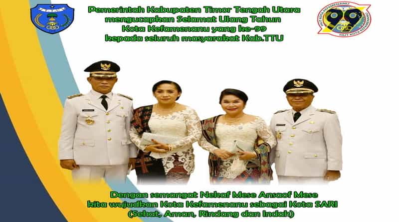 Headline 21/09/2021 alex Bagikan Artikel iniPemerintah Kabupaten Timor Tengah Utara Mengucapkan Selamat Ulang Tahun Kota Kefamenanu Yang ke-99 Kepada Seluruh Masyarakat Kabupaten TTU