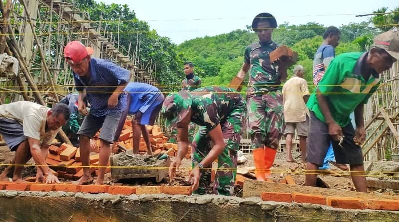 Kefamenanu, NTTOnlinenow.com – Anggota Satuan Tugas Pengamanan (Satgas Pamtas) RI-RDTL Yonif 743/PSY Pos Inbate, terlibat aktif membantu masyarakat dalam nembangun Gereja Katolik Inbate di Desa Perbatasan Inbate, Kecamatan Bikomi Nilulat, Kabupaten Timor Tengah Utara, NTT. Sabtu (22/01/22).