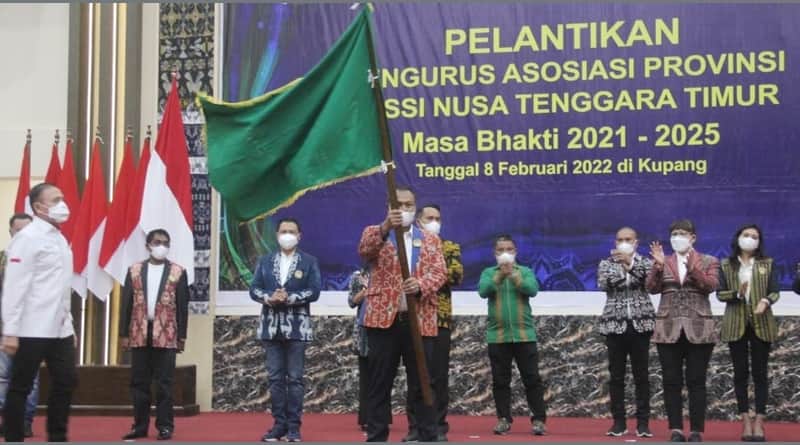 Kupang, NTTOnlinenow.com – Ketua Umum Persatuan Sepakbola Seluruh Indonesia (PSSI), Mochamad Iriawan alias Iwan Bule melantik pengurus Asosiasi Provinsi (Asprov) PSSI Nusa Tenggara Timur masa bhakti 2021-2025 di Aula El Tari, Kupang, Selasa (8/2/2022) malam.