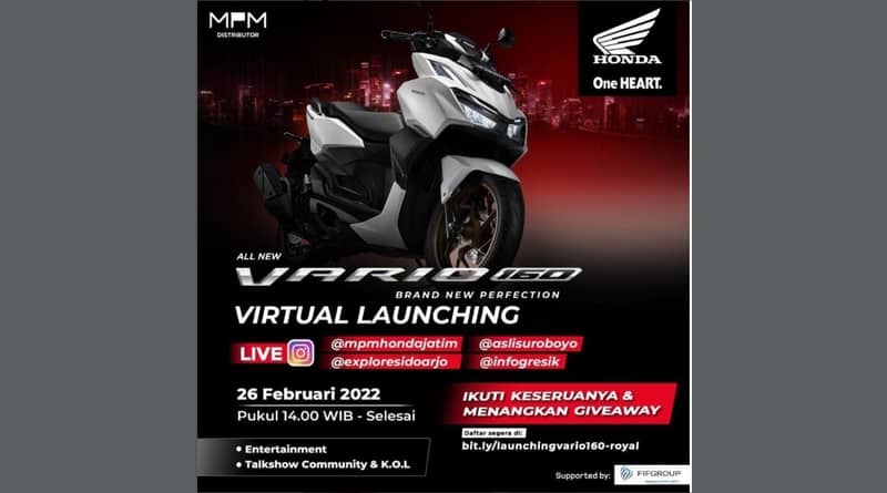 Surabaya, NTTOnlinenow.com – Kehadiran Skutik Idola Baru All New Honda Vario160 di Jatim dan NTT juga disemarakkan dengan kegiatan virtual launching yang diadakan oleh PT. Mitra Pinasthika Mulia ( MPM Honda Jatim) distributor sepeda motor Honda wilayah Jatim dan NTT disiarkan secara serentak melalui live streaming di Instagram @mpmhondajatim dan akun Instagram media partner @aslisuroboyo, @infogresik, @exploresidoarjo pada Sabtu, 26 Februari 2022 mulai pukul 14.00-selesai.