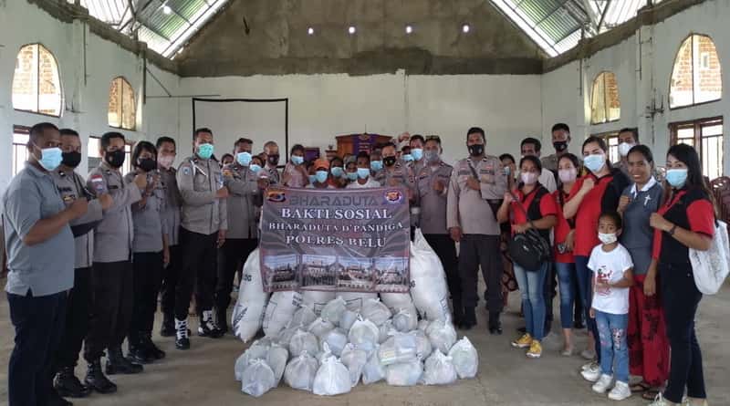 Peduli Korban Banjir Tasain, Bharaduta D’Pandiga Polres Belu Berikan Bantuan Sembako