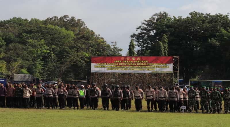 Atambua, NTTOnlinenow.com – Karo Ops Polda Nusa Tenggara Timur Kombes Pol Ulami Sudjaja memimpin Apel Gelar Pasukan Operasi Pengamanan VVIP dalam rangka Kunjungan Kerja Presiden RI beserta rombongan di wilayah Kabupaten Belu.