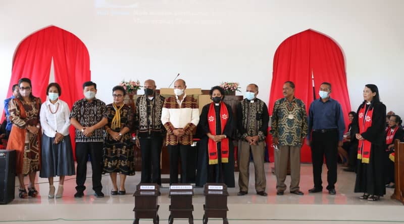 Kupang, NTTOnlinenow.com – Gubernur NTT, Viktor Bungtilu Laiskodat (VBL) bersama Ketua Majelis Sinode GMIT, Pdt. DR. Mery L. Y. Kolimon meresmikan dan menahbiskan Gedung Kebaktian Jemaat GMIT Samaria Noelbaki Klasis Kupang Tengah pada Minggu (8/5/2022). Acara tersebut berlangsung khidmah dan memberi makna kerukunan yang luar biasa, karena ikut terlibat didalam kepanitiaan peresmian sejumlah orang muda lintas agama, yaitu Perwakilan Umat Muslim dan Umat Katholik.