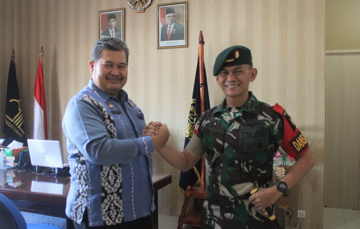 Atambua, NTTOnlinenow.com – Kepala Kantor Imigrasi Kelas II TPI Atambua, K. A. Halim menerima kunjungan Komandan Satuan Tugas Pengamanan Perbatasan RI-RDTL Sektor Timur Yonif RK 744/SYB, Letkol Inf Yudhi Yahya.