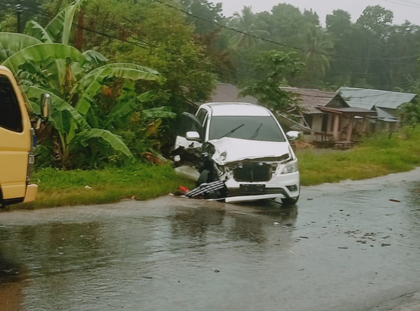 Foto : Kondisi mobil Inova Putih pasca tabrakan, yang mengangkut kayu cendana diduga ilegal.