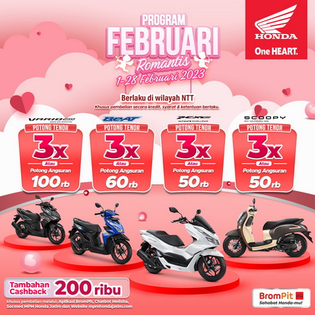 Februari Romantis, Dealer Honda NTT Berikan Potongan Tenor 3 Kali untuk Skutik Honda.