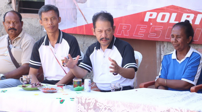 Atambua, NTTOnlinenow.com – Kapolres Belu AKBP Richo Simanjuntak didampingi Wakapolres, Kompol I Putu Surawan bersama para Perwira, Brigadir dan ASN Polri menyambangi Dusun Fohomea, Kelurahan Manumutin, Kabupaten Belu perbatasan RI-RDTL, Jumat (28/7/2023).