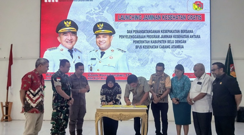 Perjanjian Kerja Sama guna memastikan keberlanjutan Program Berobat Gratis selama masa kepemimpinan Bupati Willybrodus Lay dan Wabup Vicente Hornai bertempat di gedung Betelalenok Atambua wilayah perbatasan RI-RDTL, Kamis (5/6/2025).
