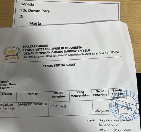 Atambua,NTTOnlinenow.com-Kuasa Hukum Ketua Legiun Veteran Republik Indonesia (LVRI) Markas Cabang (Macab) Kabupaten Belu, Stefanus Atok Bau resmi melaporkan media online Aswin News dan wartawan ke Dewan Pers.