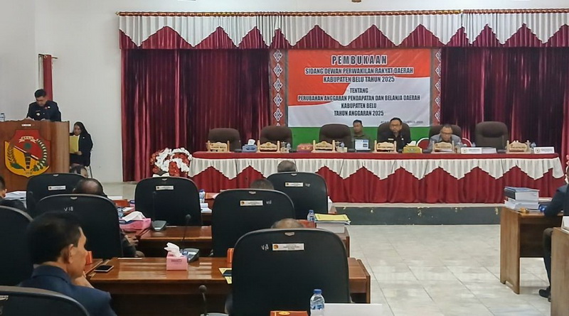 Sidang dengan agenda perubahan Anggaran Pendapatan dan Anggaran Daerah Kabupaten Belu tahun anggaran 2025 berlangsung di ruang sidang peripuran DPRD Belu wilayah perbatasan RI-RDTL.