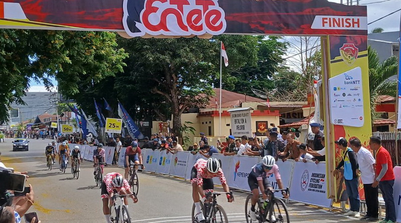 Atambua,NTTOnlinenow.com-Pemerintah Daerah (Pemda) Kabupaten Belu menyambut peserta balap sepeda lintas Timor, Sumba dan Flores etape dua Tour De EnTeTe di garis finish lapangan umum Atambua wilayah perbatasan RI-RDTL, Kamis (11/9/2025).